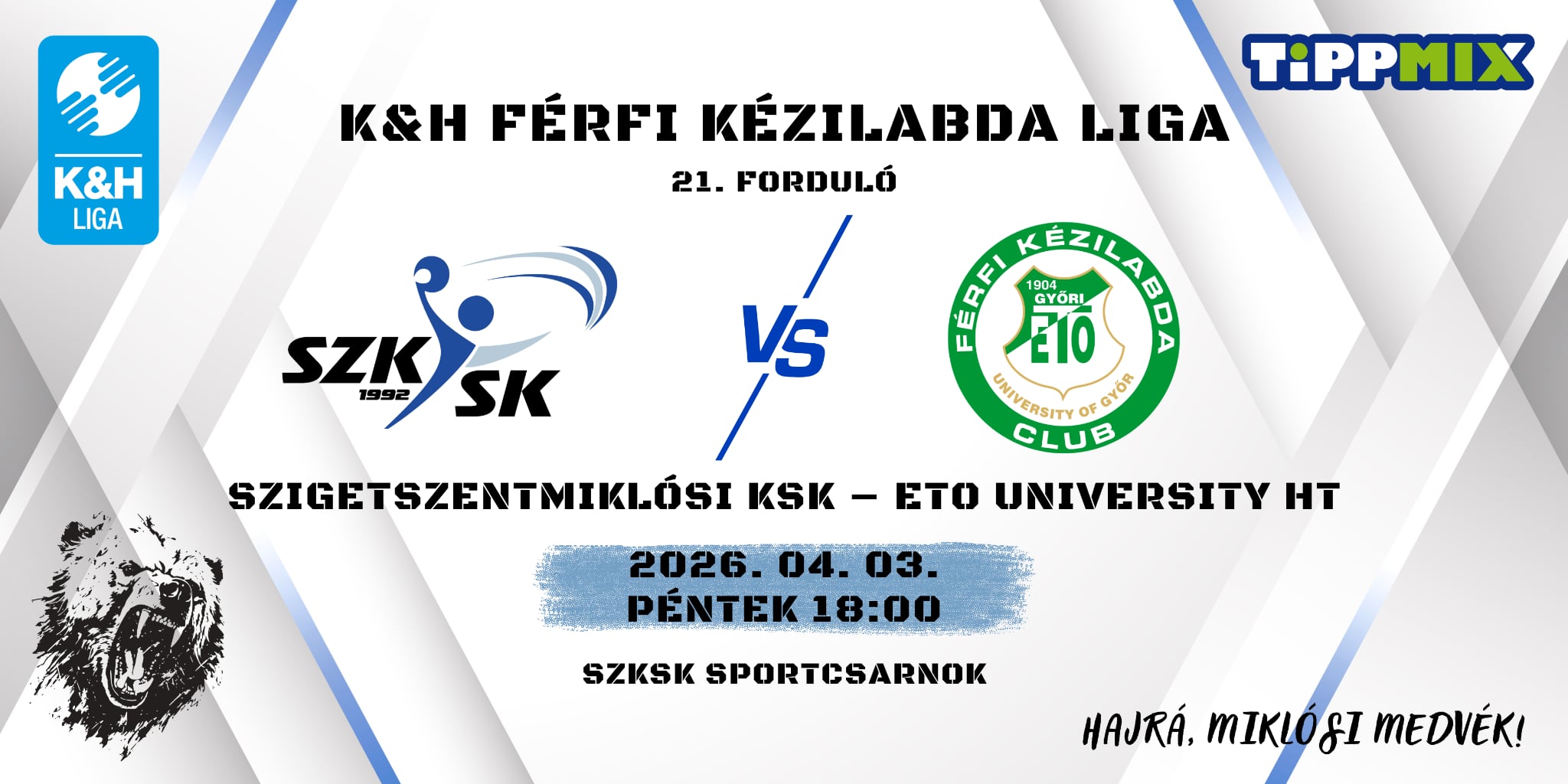 Folytatódott a K&H Férfi Kézilabda Liga tavaszi menete: a 21. fordulóban a Szigetszentmiklósi KSK hazai pályán fogadta az ETO University Handball Team együttesét, és egy végletekig kiélezett mérkőzésen az utolsó pillanatokban mentett pontot.