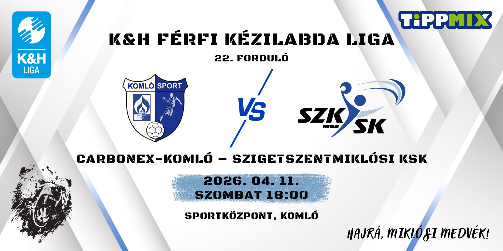 A K&H férfi kézilabda liga 22. fordulójában idegenben lép pályára a Szigetszentmiklósi KSK csapata: a Miklósi Medvék 2026. április 11-én, szombaton 18 órától a Carbonex-Komló vendégeként szerepelnek.